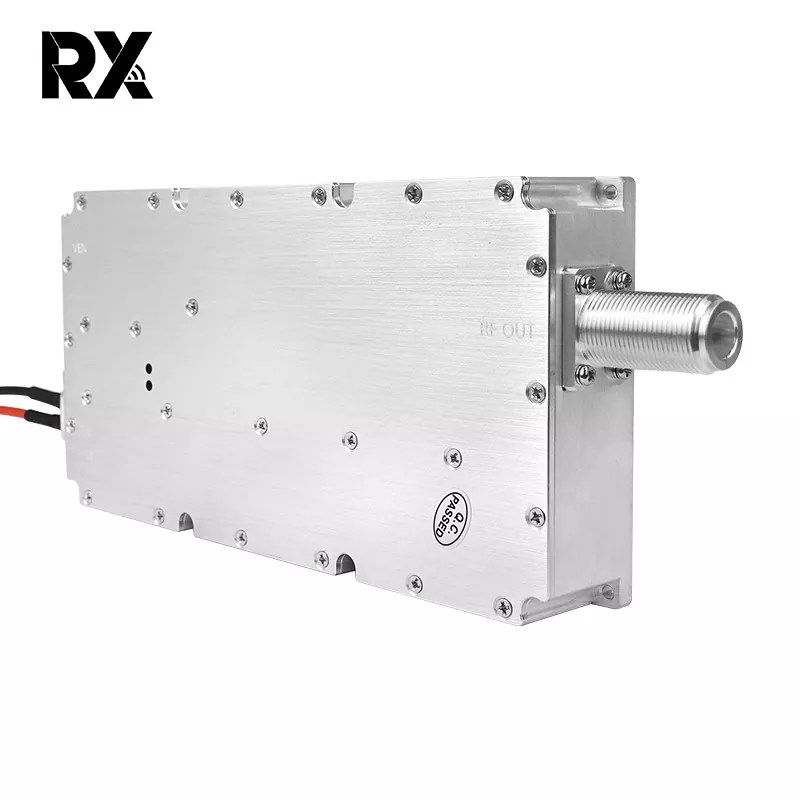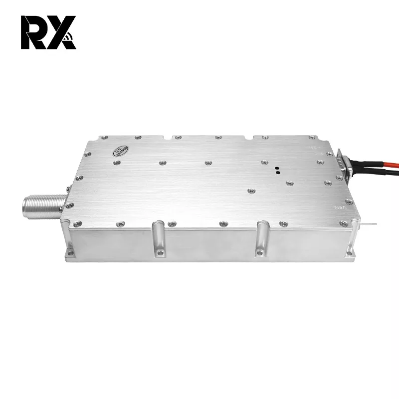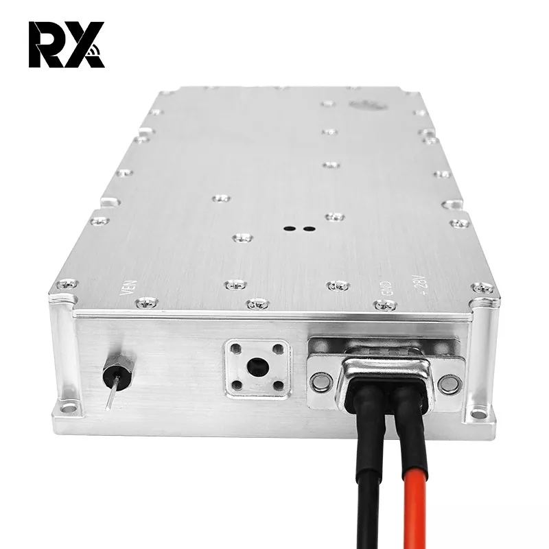 El módulo presenta una aleación de aluminio de alta calidad, un tamaño compacto y fácil de instalar. El producto cuenta con una excelente adaptabilidad ambiental, soportando un amplio rango de temperatura de funcionamiento de -40 °C a +65 °C, cumpliendo con los requisitos de vibración del uso en vehículos. Módulo bloqueador FPV de alta potencia de 200 W 2100-2500 MHz 28 V CC El uso con un conector hembra tipo N garantiza una transmisión de señal confiable y consistente, puede ser adecuado para aplicaciones de interferencia FPV en escenarios diversos y complejos, incluidas aplicaciones en vehículos y exteriores.
