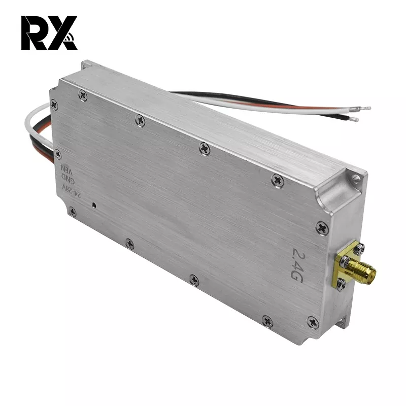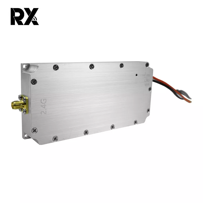 Este módulo bloqueador de señal de 2,4G y 50 W para drones, muy vendido, con una salida de potencia de 50 W, puede generar fuertes señales de RF. Cubriendo el rango de frecuencia de 2400 - 2485 MHz, comúnmente utilizado por drones para comunicación, control, señales remotas, transmisión de imágenes y funciones satelitales, su potente salida de 50 W permite que las señales de interferencia dominen las señales legítimas de los drones. En consecuencia, interrumpe efectivamente el funcionamiento normal de los drones, impidiéndoles funcionar según lo planeado.